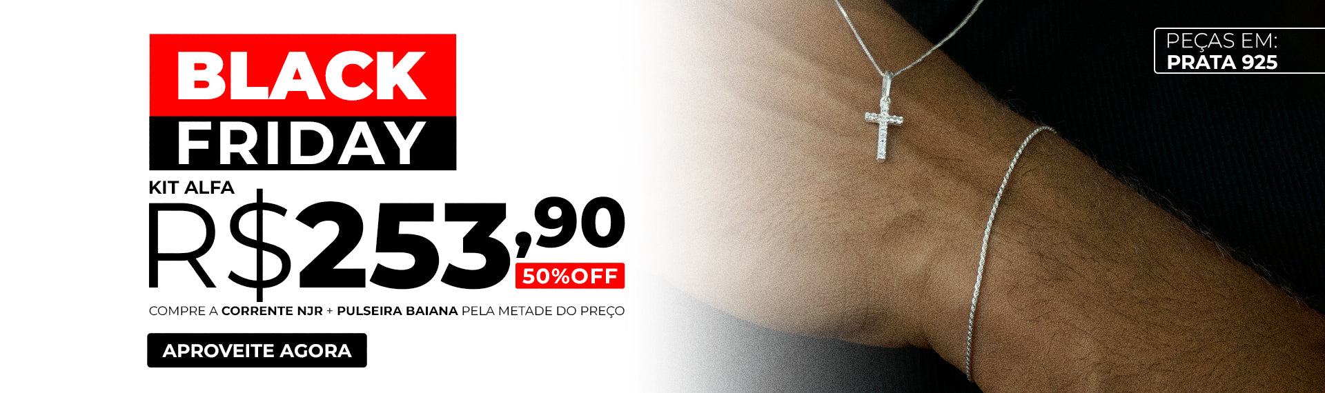 Corrente NJR + Pulseira Baiana [50%OFF] Prata 925