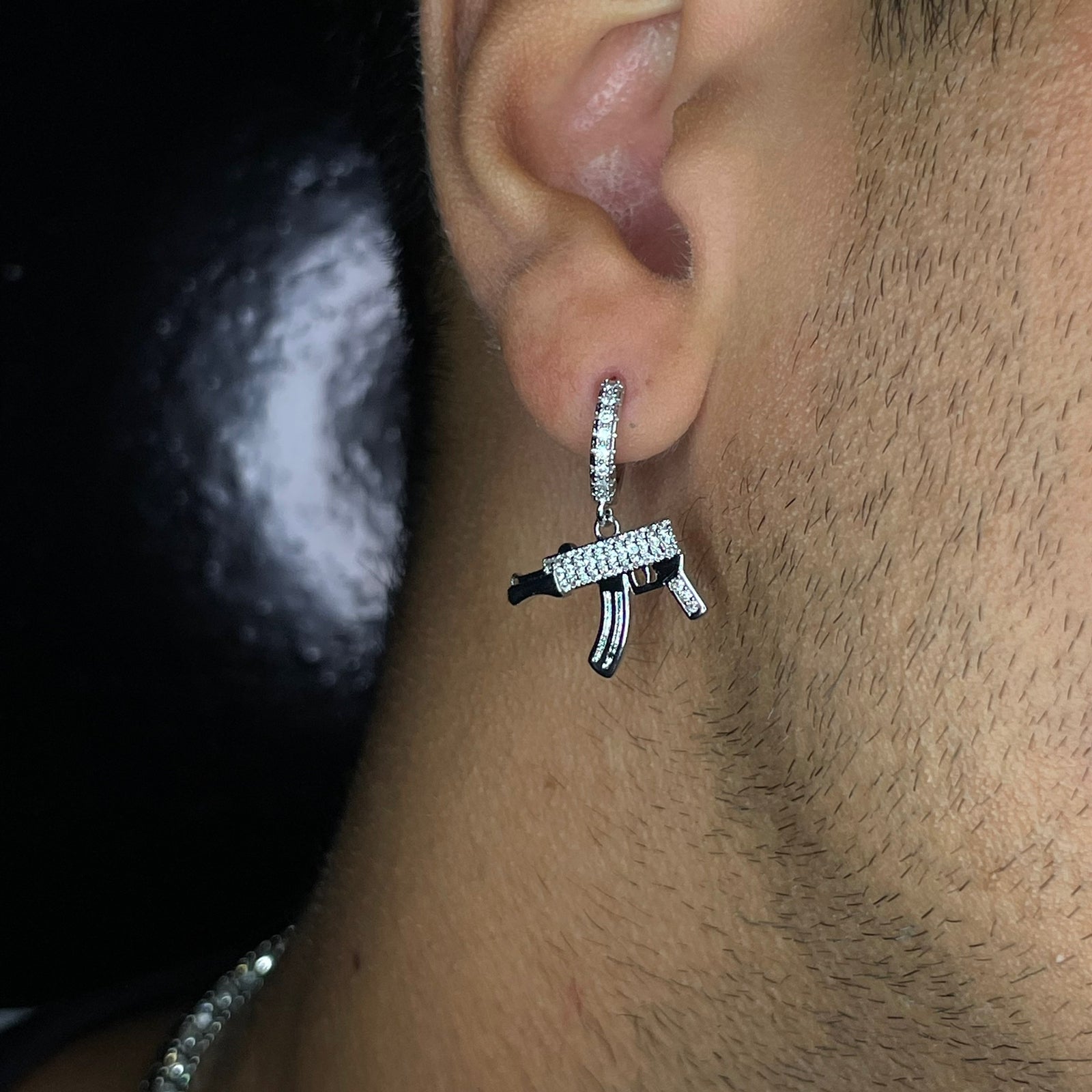 Argola Arma Cravejada Prateado