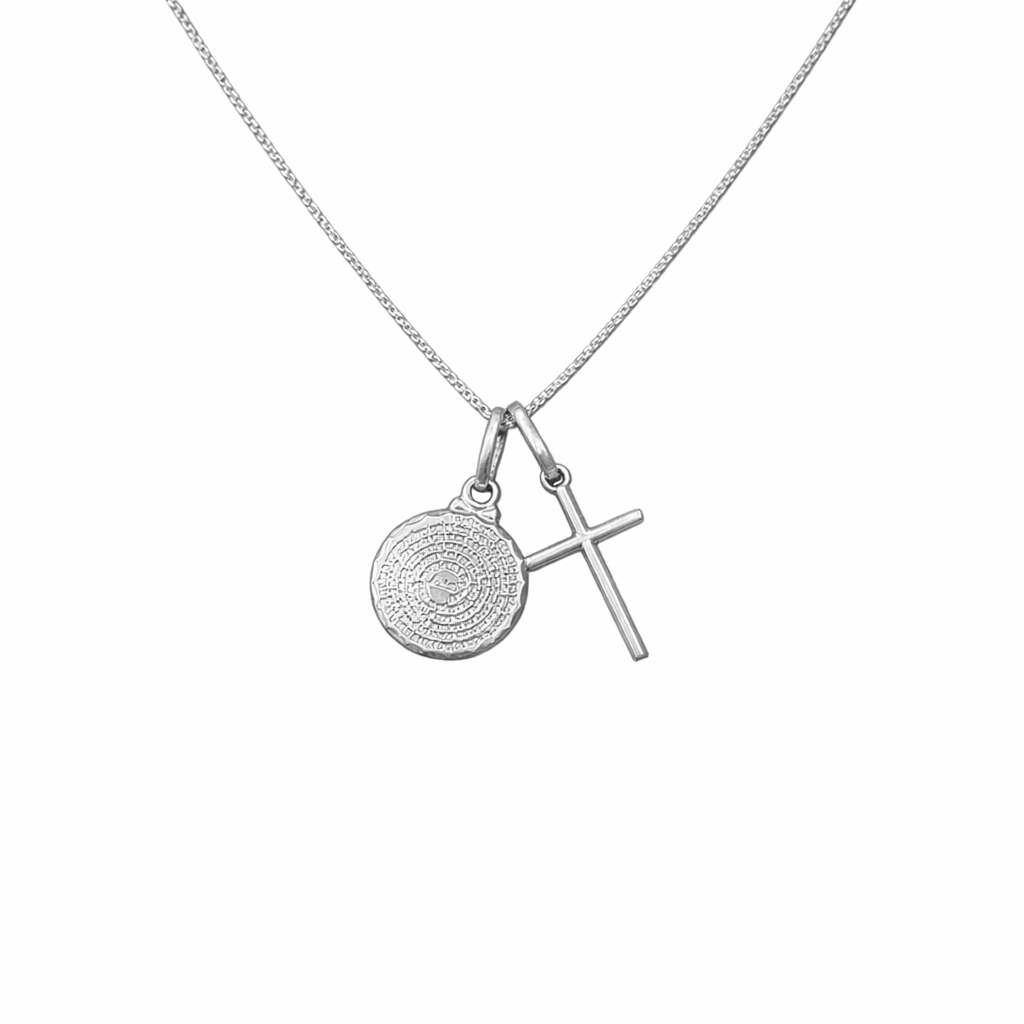 Colar Pai nosso + Pingente Cruz Lisa Prata 925